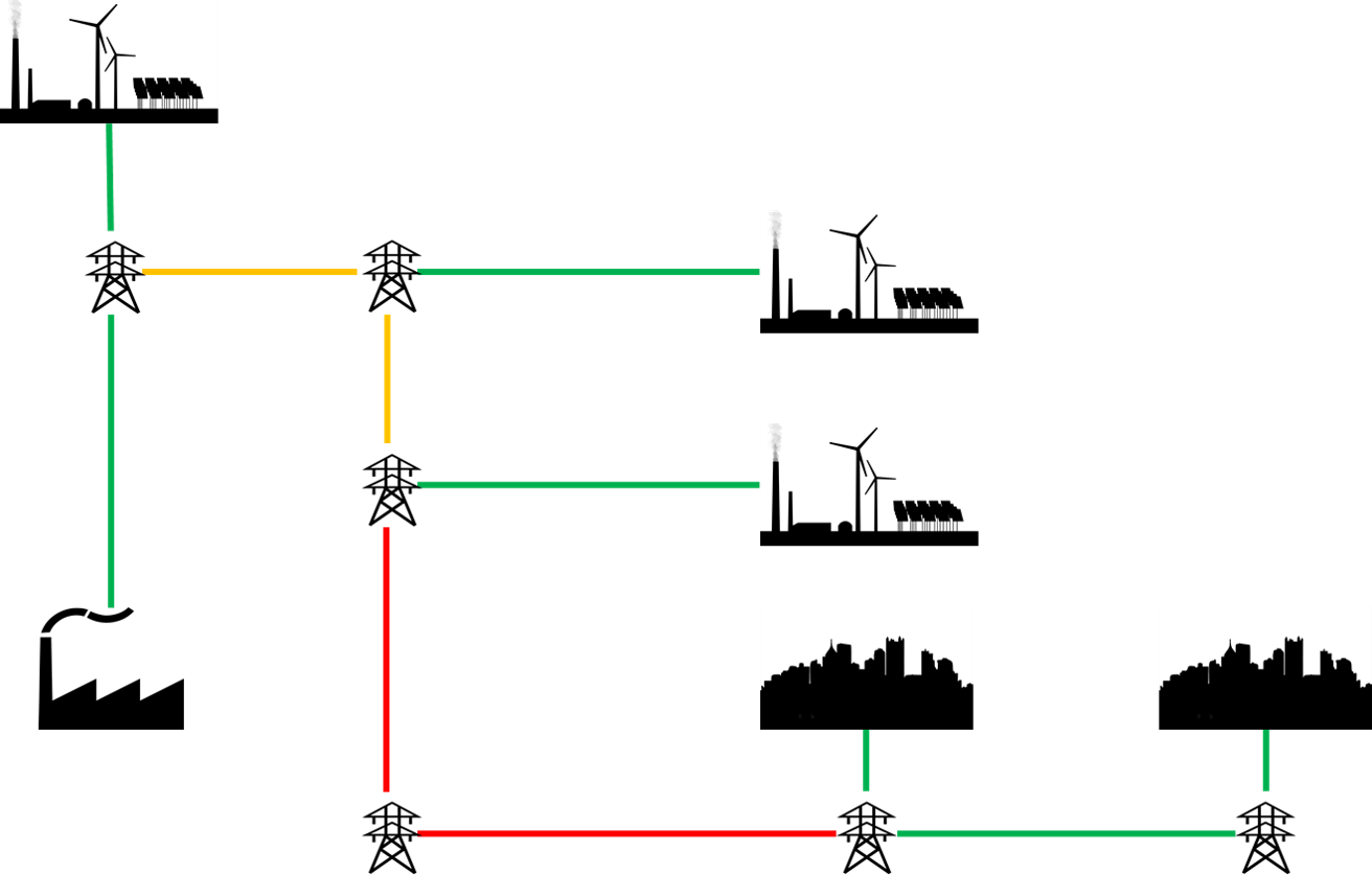 Zunächst wird ein Netzmodell erarbeitet, welches mehrere skalierbare Erzeuger und Verbraucher, sowie verschiedene Leitungsverbindungen beinhaltet. Hierbei ist zu berücksichtigen, dass sowohl unkritische als auch kritische Fälle mit überlasteten Leitungen auftreten können.